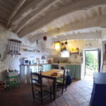 Tiene forjados de vigas de castaño que, en ocasiones, apoyan sobre la roca cruda de la montaña integrada muy hábilmente en el diseño de la cocina. Solería de barro cocido en planta baja y suelo continuo tradicional en planta primera. Combina con azulejos de la prestigiosa firma Alizares siendo su carpintería de madera de castaño.